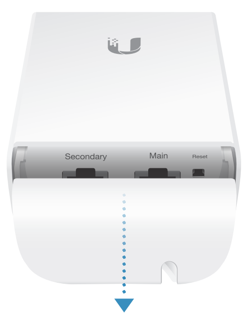Press the Port Cover Release Button located on the back of the NanoStation and slide the cover off.