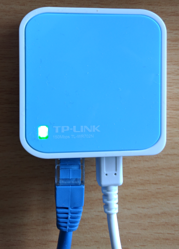 Plug your Wi-Fi extender into USB power and switch it on, plug one end of the supplied Ethernet cable into the Wi-Fi extender, and the other into your computer